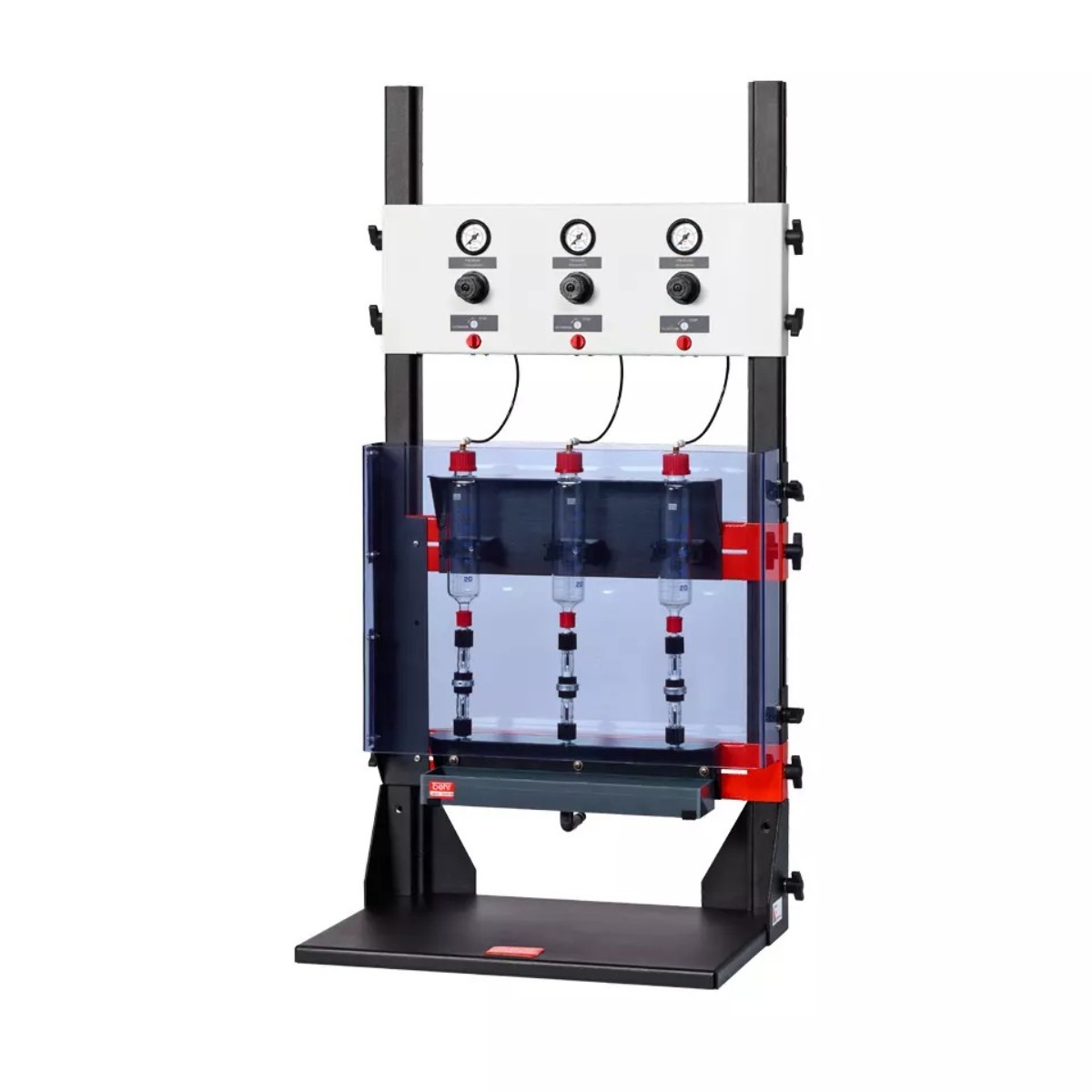 Принцип его работы основан на пневматической подаче: проба медленно пропускается через систему адсорбционных колонок не с помощью электрического насоса, а под давлением инертного газа, такого как азот, или, в соответствии с конкретной методикой, кислорода, что обеспечивает деликатную и контролируемую фильтрацию.