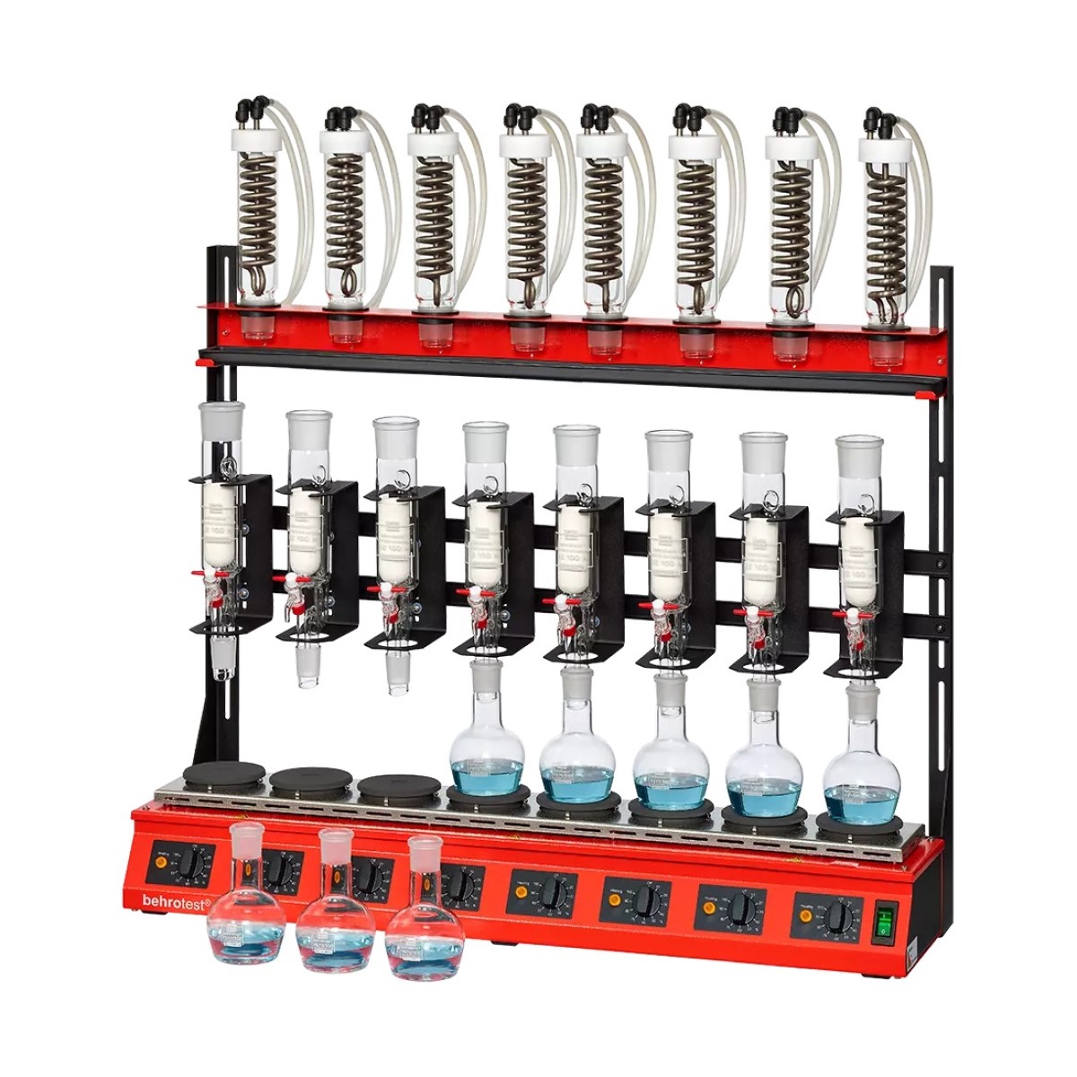 Аппарат для экстракции по Сокслету Behr behrotest R 108 S-FB/TK представляет собой многопозиционную компактную систему, предназначенную для одновременной экстракции 8-ти проб объёмом до 100 мл каждая, что существенно повышает производительность лабораторных исследований.