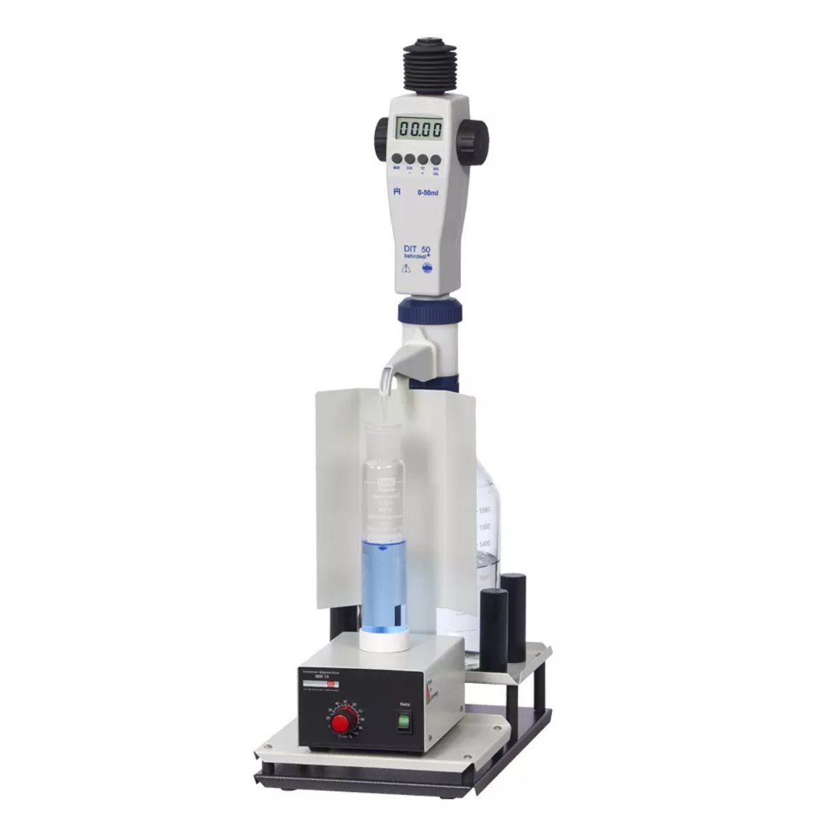 Станция ручного титрования Behr HTI 1 представляет собой комплект, состоящий из цифровой бюретки и магнитной мешалки с держателем для реакционных сосудов, и предназначена для обеспечения точного и воспроизводимого визуального титрования, в частности для определения химического потребления кислорода (ХПК) и других методов.