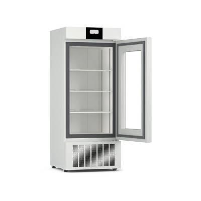 Дверь холодильника выполнена из прочного стекла, что обеспечивает хороший обзор внутреннего пространства без необходимости открывать дверцу. Такое решение позволяет оператору визуально контролировать наличие и состояние хранящихся образцов, что особенно удобно, когда требуется быстрый доступ к информации при минимальном вмешательстве в температурный режим. Прочное стекло обладает высокой устойчивостью к механическим воздействиям, термическим нагрузкам и химическим веществам, используемым для дезинфекции.