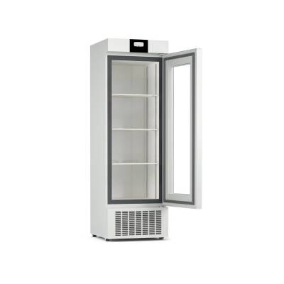 Дверь холодильника выполнена из прочного стекла, что обеспечивает хороший обзор внутреннего пространства без необходимости открывать дверцу. Такое решение позволяет оператору визуально контролировать наличие и состояние хранящихся образцов, что особенно удобно, когда требуется быстрый доступ к информации при минимальном вмешательстве в температурный режим. Прочное стекло обладает высокой устойчивостью к механическим воздействиям, термическим нагрузкам и химическим веществам, используемым для дезинфекции.