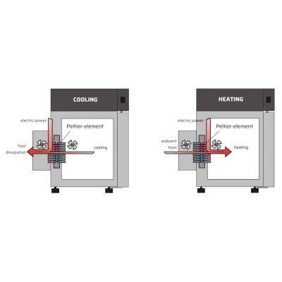 Климатические камеры Pol-Eko серии KKP с технологией охлаждения элементами Пельтье обеспечивают стабильные, бесшумные, безвибрационные климатические условия, поддерживая превосходные показатели колебаний температуры и экономя пространство. Климатические камеры постоянного действия KKP с паровым увлажнителем не излучают ультразвука, что позволяет размножаться насекомым (например, Drosophila melanogaster). По сравнению с камерами KK, они обладают расширенным диапазоном температур и влажности и могут использоваться для испытаний электроники, пластика и строительных материалов.