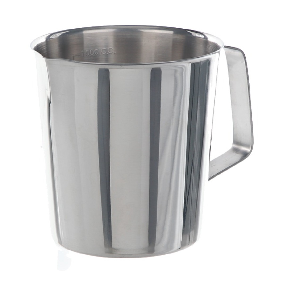 Сливной носик позволяет аккуратно дозировать содержимое без потерь, а эргономичная ручка гарантирует безопасный захват даже при работе с нагретыми веществами. Четкая градуировка с ценой деления 100 мл обеспечивает точное измерение объемов.