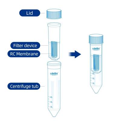 Он изготовлен из ультрафильтрационной мембраны из регенерированной целлюлозы (RC), обладающей высокой скоростью ультрафильтрации, высоким коэффициентом концентрирования и высокой степенью извлечения. Типичное время концентрирования составляет от 10 до 60 минут в зависимости от порогового значения молекулярной массы (НОММ). Он позволяет достичь коэффициента концентрирования от 15 до 70 раз, а степень извлечения образца обычно превышает 85%.