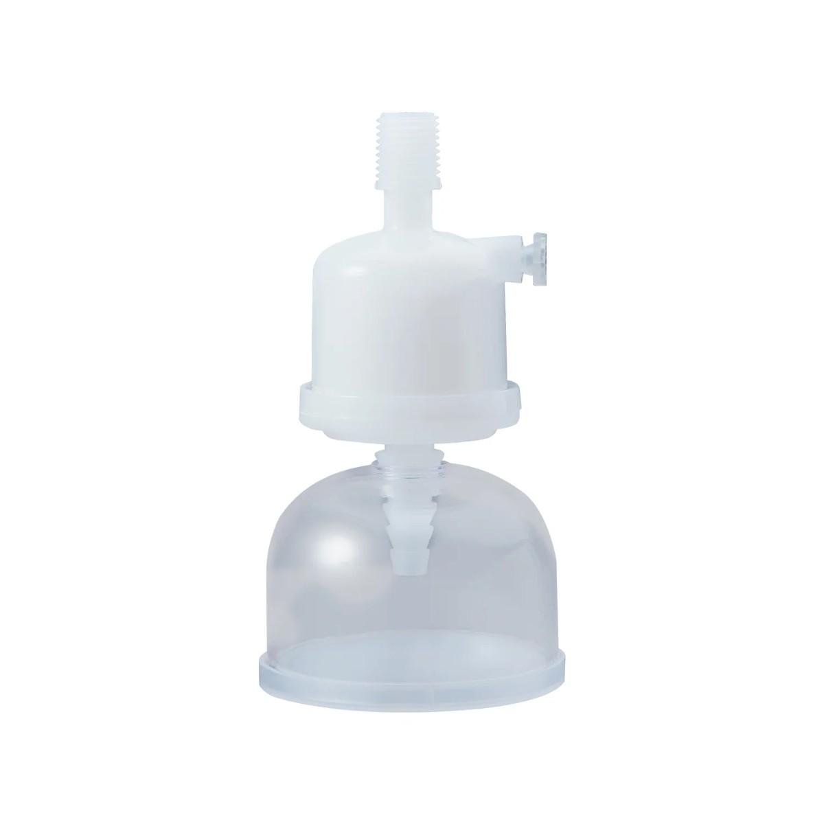 Фильтр подключается непосредственно к выходному отверстию системы очистки воды и используется для получения стерильной воды, свободной от бактерий и механических частиц, что гарантирует стабильное качество воды для чувствительных лабораторных анализов. Он оснащен входным портом с резьбой 1/4″ NPT, что обеспечивает стандартизированное герметичное подключение к системам очистки воды и трубопроводам с конической резьбой. Выходной порт выполнен в виде ступенчатого штуцера для шланга с диапазоном диаметров 1/4—1/2 дюйма, что позволяет надежно подключать гибкие трубки различного внутреннего диаметра без использования дополнительных переходников.