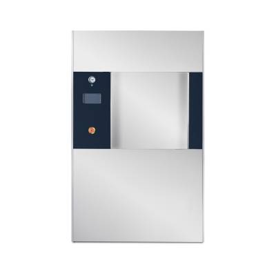 Оснащение включает две раздвижные двери из нержавеющей стали AISI 316L (для проходной конфигурации «грязная/чистая зоны»). В стандартную комплектацию входят парогенератор, вакуумный насос для эффективного удаления воздуха из камеры и загрузки, а также воздушный фильтр HEPA с эффективностью задержания частиц размером до 0,2 мкм, обеспечивающий подачу стерильного воздуха для вентиляции и сушки.