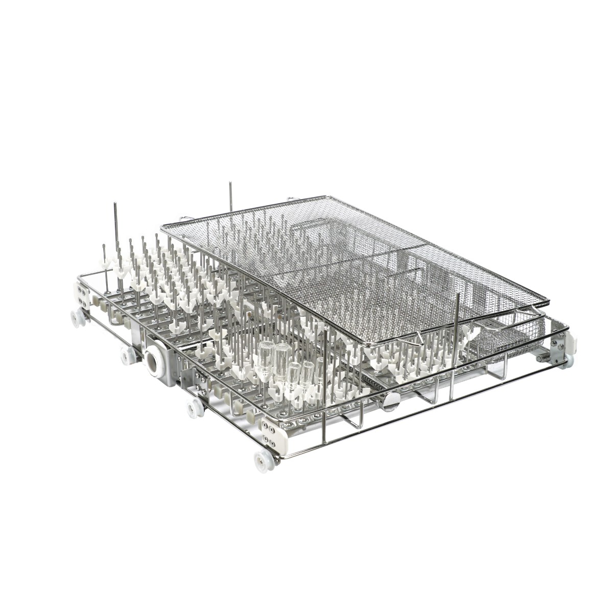 Благодаря большому количеству позиций, стойка позволяет одновременно обрабатывать до 222 единиц лабораторной посуды, что значительно повышает пропускную способность процессов мойки и сокращает общее время цикла.