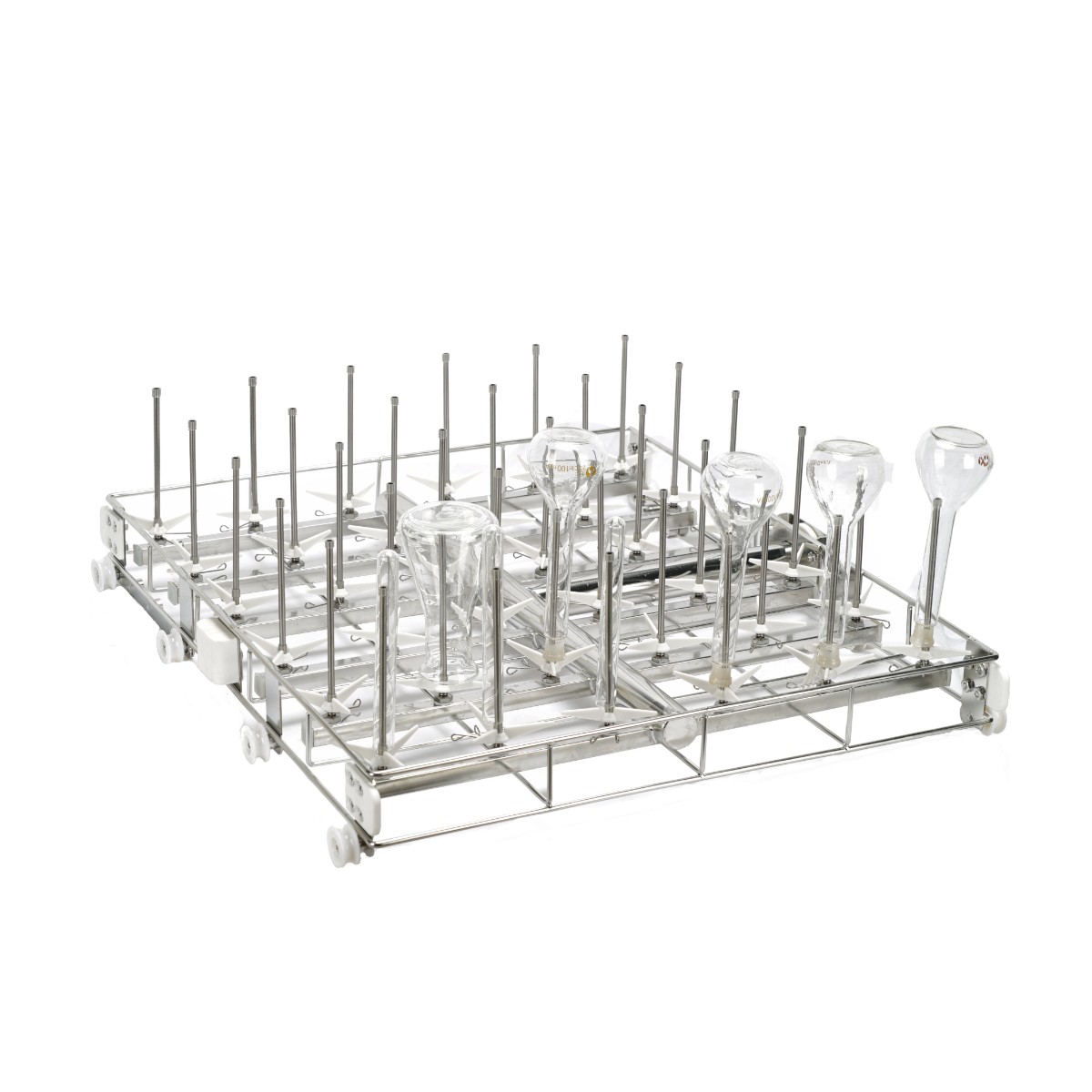 Использование данной стойки позволяет значительно повысить производительность процессов мойки, сократить ручной труд и обеспечить воспроизводимые результаты очистки для больших партий лабораторной посуды.