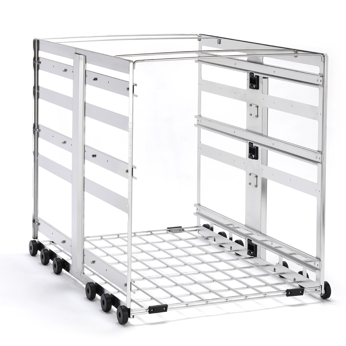 Передвижная конструкция тележки оснащена колесами или роликами, что позволяет легко транспортировать полностью загруженную стойку от места подготовки к моечной машине и обратно, экономя физические усилия оператора и ускоряя рабочий процесс.
