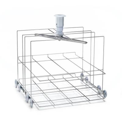 Установка используется вместе с корзиной CSKDIN, в которую загружают инструменты. За один цикл можно обработать до 4 таких корзин. Устройство устанавливается на нижний уровень моечной или дезинфицирующей машины — там обычно самый сильный напор воды, что хорошо для удаления загрязнений.