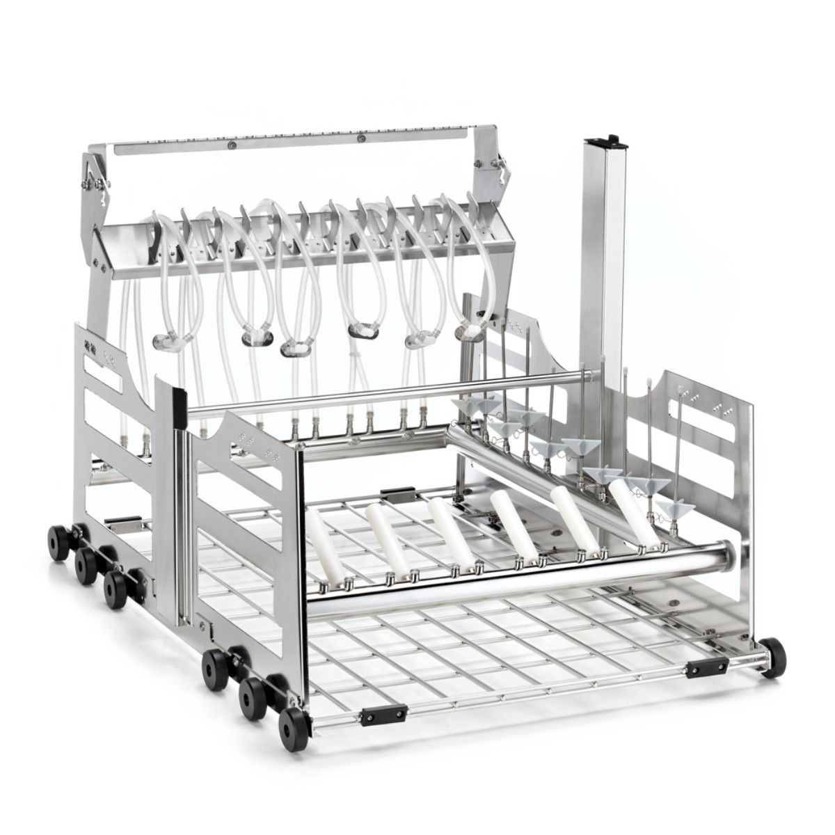 Модуль предусматривает 2 уровня стирки, что позволяет организовать двухъярусную обработку инструментов. Такая конфигурация обеспечивает равномерное и тщательное омывание как наружных поверхностей, так и труднодоступных участков каждого инструмента за счет оптимального распределения моющего раствора по обоим уровням. Модуль выполнен из высококачественных материалов, устойчивых к коррозии, агрессивным моющим средствам и высоким температурам, что гарантирует долговечность и надежность даже при интенсивной ежедневной эксплуатации в условиях роботизированных операционных.