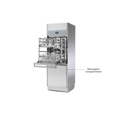 Машина оснащена вместительным отсеком для моющих средств, который вмещает до трех 5-литровых канистр (например, для щелочного средства, кислотного нейтрализатора и дополнительной добавки) и одного 1-литрового контейнера. Перистальтические насосы обеспечивают точную и правильную дозировку моющих средств в соответствии с выбранной программой.