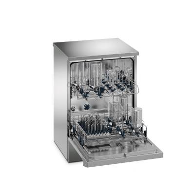 Машина отличается оптимизированной пропускной способностью: полезная площадь камеры спроектирована таким образом, чтобы одновременно мыть стеклянную посуду различных форм и размеров. На обоих уровнях загрузки можно одновременно мыть бутылки объемом до 1 000 мл, что значительно повышает производительность лаборатории и сокращает количество циклов мойки.