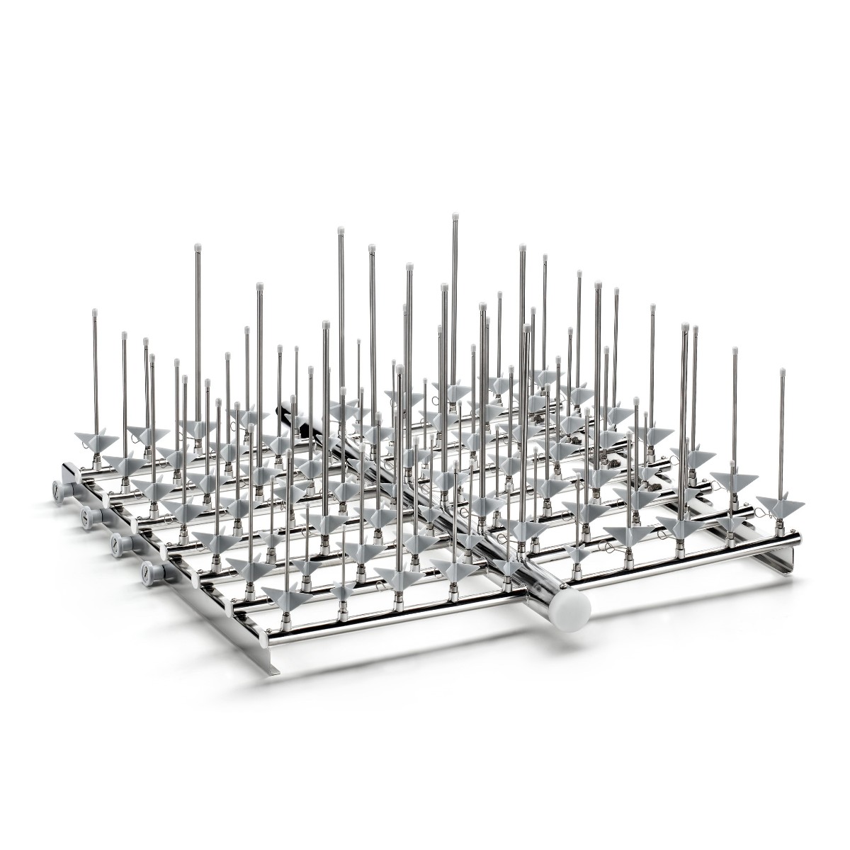 Данный модуль поставляется в комплекте с 76 соплами (форсунками), которые обеспечивают направленную подачу моющего раствора под давлением внутрь обрабатываемых предметов. Благодаря такому количеству сопел модуль способен одновременно подключать до 76 единиц лабораторной посуды, требующих инжекторной мойки — например, колб, мерных цилиндров, пробирок или других полых изделий с узким горлом.