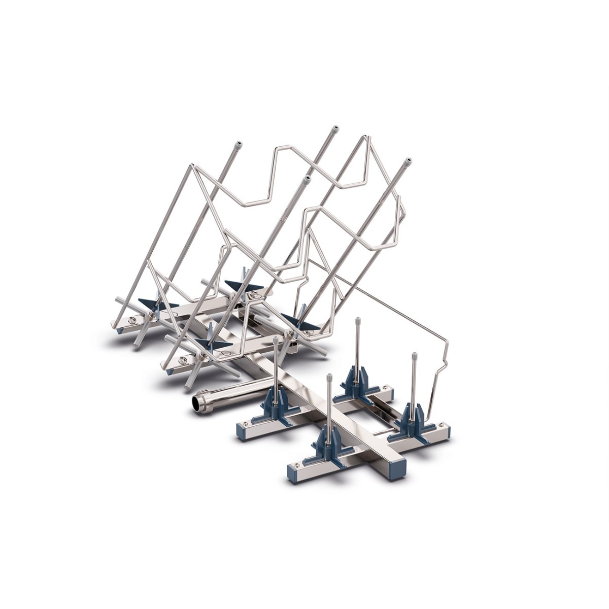 Модуль для загрузки мерных цилиндров и очистки лабораторной посуды Smeg MFL-C4B4 представляет собой специализированное приспособление для профессиональных лабораторных посудомоечных машин, предназначенное для эффективной мойки высоких и крупногабаритных лабораторных емкостей.