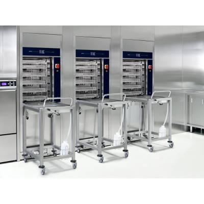 Термический дезинфектор Smeg WD7010 представляет собой высококачественное профессиональное оборудование большой вместимости, предназначенное для автоматизированной очистки и термической стерилизации лабораторной посуды и инструментов. Данная модель имеет допустимую загрузку по стандарту DIN до 12 уровней, что позволяет эффективно использовать внутреннее пространство камеры для одновременной обработки большого количества предметов.