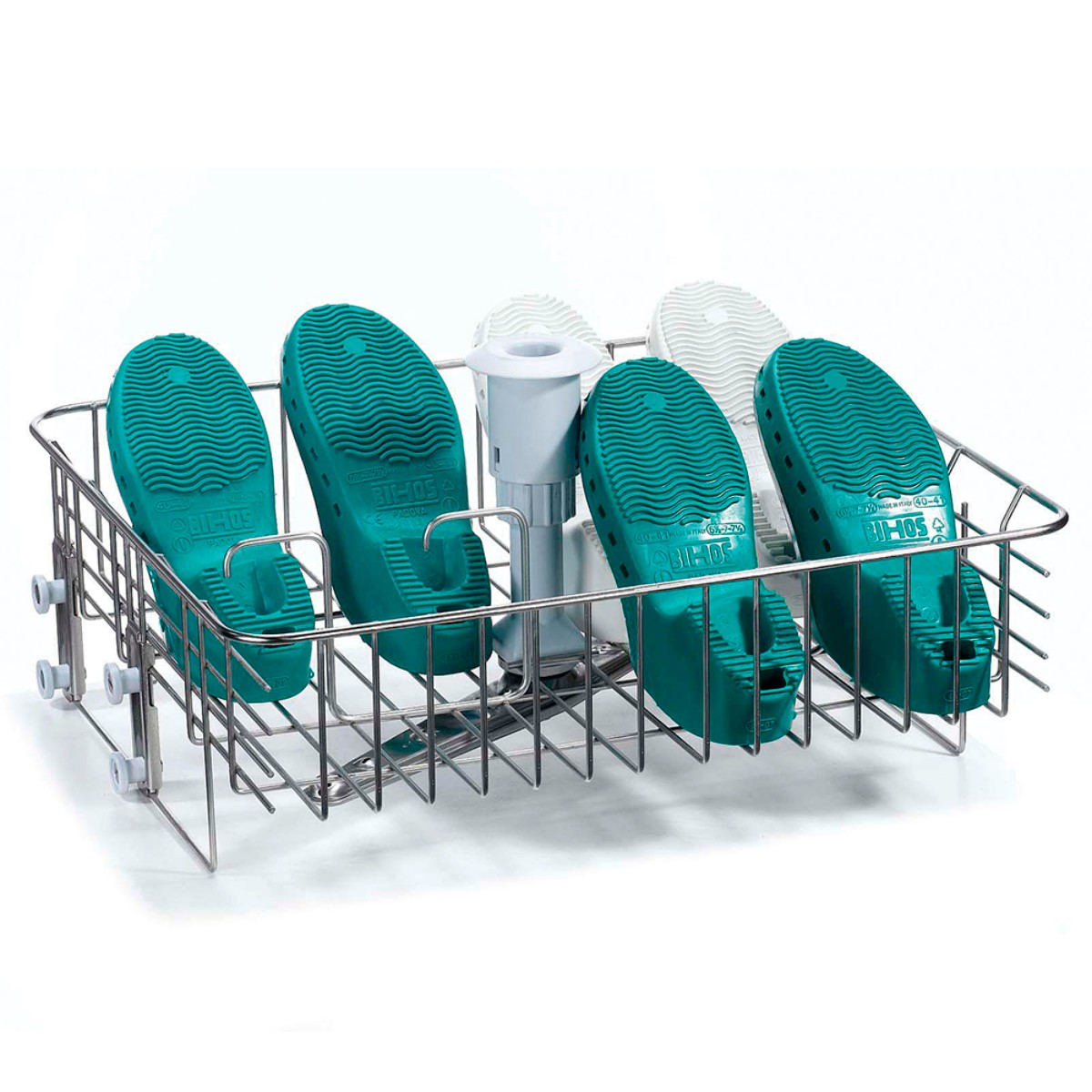 Вставка рассчитана на одновременное размещение до 8 единиц операционной обуви, в зависимости от способа загрузки. Конструкция обеспечивает надежную фиксацию обуви во время цикла мойки и дезинфекции, предотвращая ее смещение и соприкосновение друг с другом.