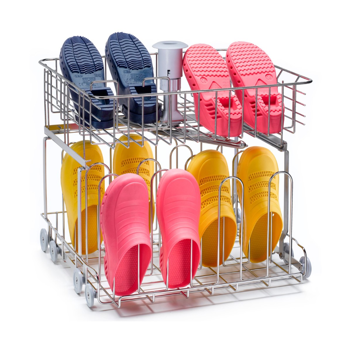 Общая вместимость модели рассчитана на 28 единиц операционной обуви за один цикл, что делает ее отличным решением для крупных учреждений здравоохранения и операционных блоков с высоким потоком пациентов. Конструкция вставки обеспечивает надежную фиксацию каждой пары или единицы обуви в заданном положении, предотвращая их смещение, соприкосновение друг с другом и повреждение во время мойки.