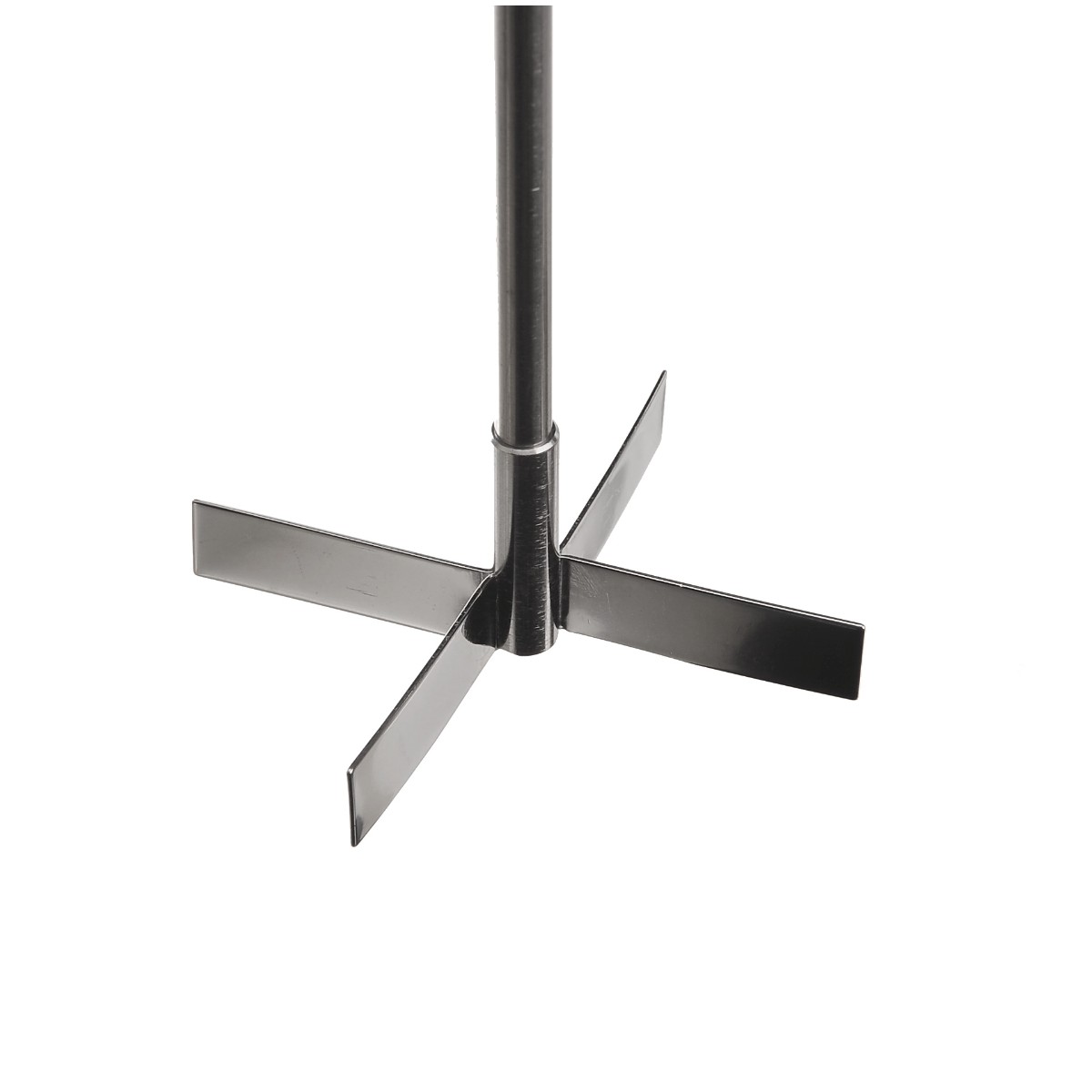 Конструкция с четырьмя лопастями прямоугольной формы обеспечивает интенсивное радиальное перемешивание, создавая мощные турбулентные потоки, которые способствуют быстрому растворению и гомогенизации компонентов. Изготовленная из нержавеющей стали 18/10, мешалка обладает высокой коррозионной стойкостью и долговечностью, что делает её подходящей для работы с различными химическими средами, включая агрессивные растворы.