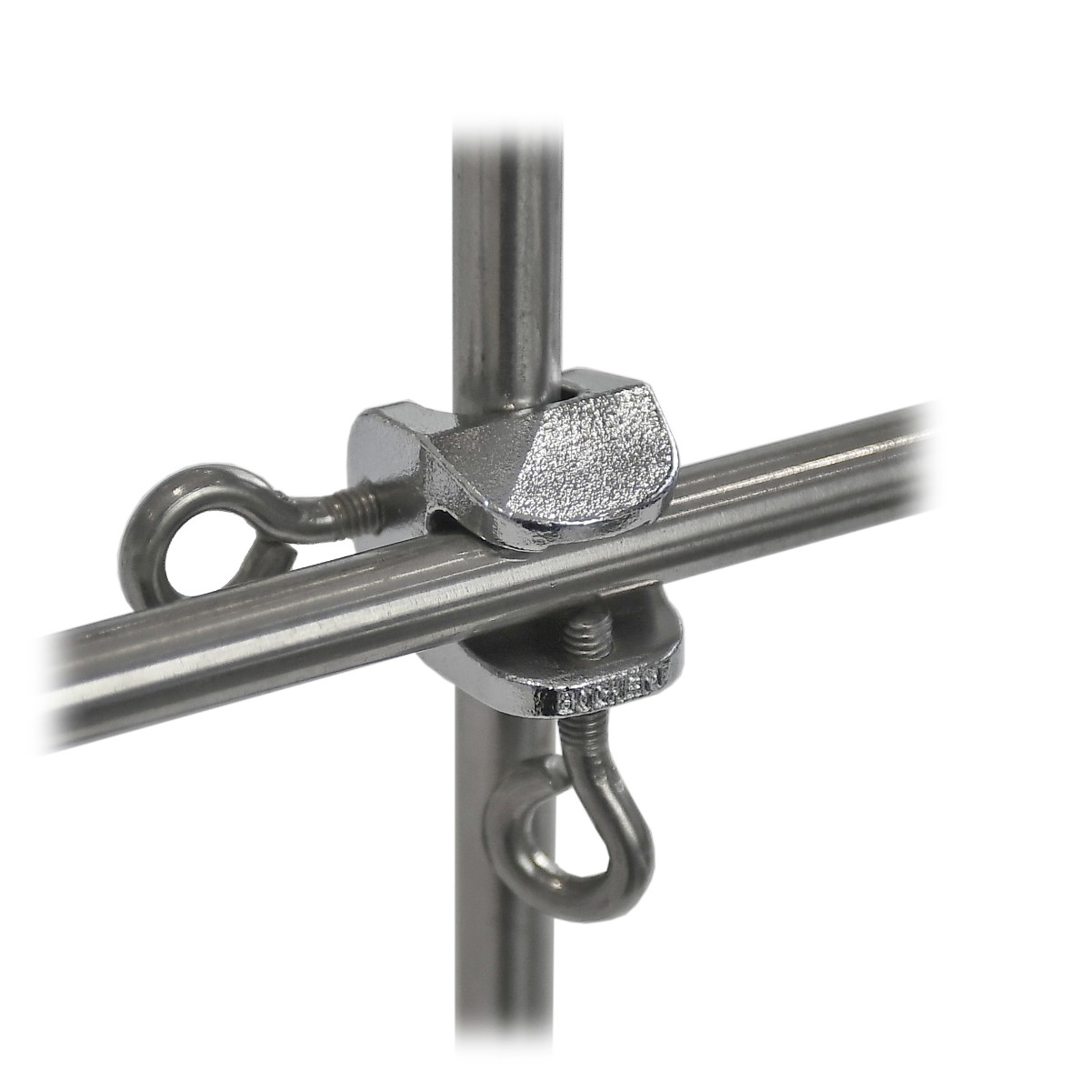 Конструкция узла рассчитана на работу с оборудованием диаметром до 13,5 мм и оснащена метрической резьбой М6. Особенностью данной модели является использование винта типа 2 с изогнутой головкой в форме сердца (M6/М8), который обеспечивает не только надежную фиксацию, но и бережный контакт с поверхностью закрепляемого оборудования, предотвращая его повреждение. Жесткое фиксированное соединение под углом 90 градусов позволяет точно позиционировать лабораторные приборы и штативные системы.