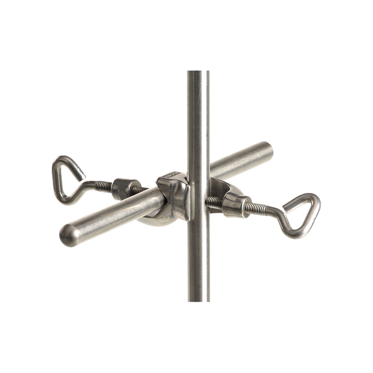Узел предназначен для надежного крепления лабораторного оборудования диаметром до 16,5 мм и оснащен метрической резьбой М8. Ключевой особенностью данной модели является использование предохранительного винта типа «сердце» (тип 4), который обеспечивает не только прочную фиксацию, но и предотвращает случайное повреждение дорогостоящего лабораторного оборудования благодаря специальной форме головки. Конструкция с жестким фиксированным углом 90 градусов гарантирует точное и стабильное позиционирование приборов и штативных систем.