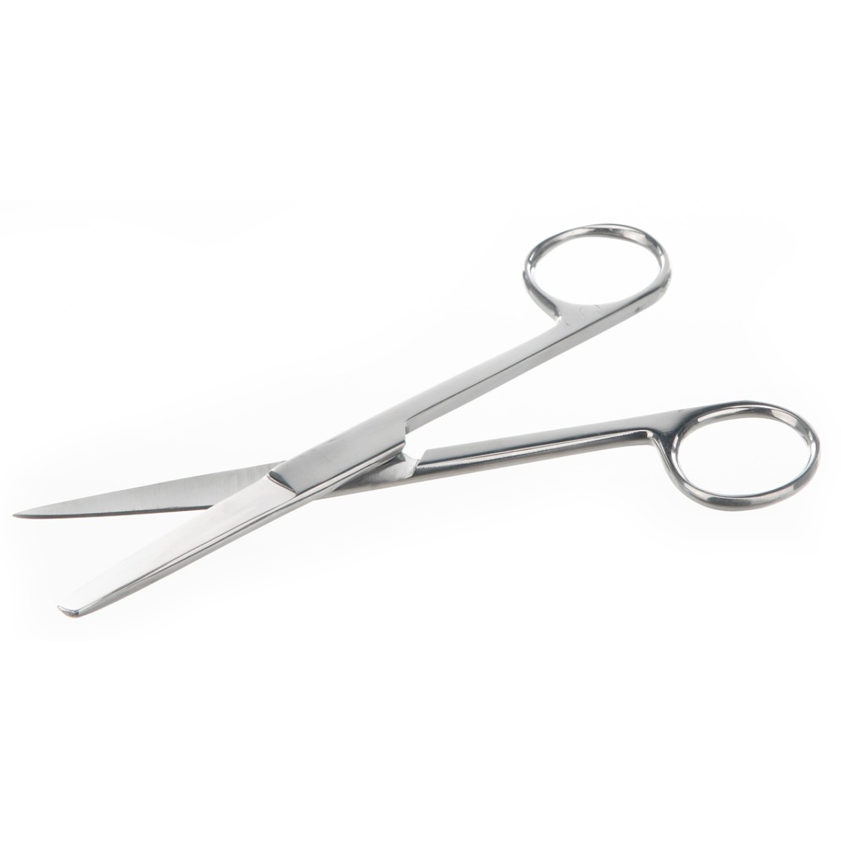 Модель длиной 130 мм оснащена лезвиями 40 мм с комбинированными концами: острый край обеспечивает точное разрезание марли, бинтов и лейкопластырей, а закругленный конец позволяет безопасно работать в непосредственной близости от кожи или чувствительных поверхностей. Изготовленные из магнитной нержавеющей стали AISI 430, ножницы устойчивы к коррозии и легко стерилизуются.