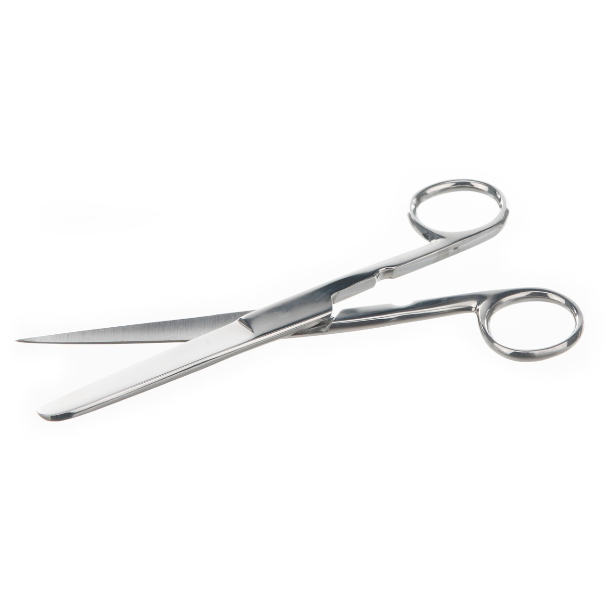 Изготовленные из магнитной нержавеющей стали AISI 430, ножницы устойчивы к коррозии и подходят для стерилизации. Модель длиной 150 мм оснащена лезвиями 65 мм с комбинированными концами: острый край обеспечивает точное разрезание плотных материалов, а закругленный — безопасную работу с тканями и бинтами.