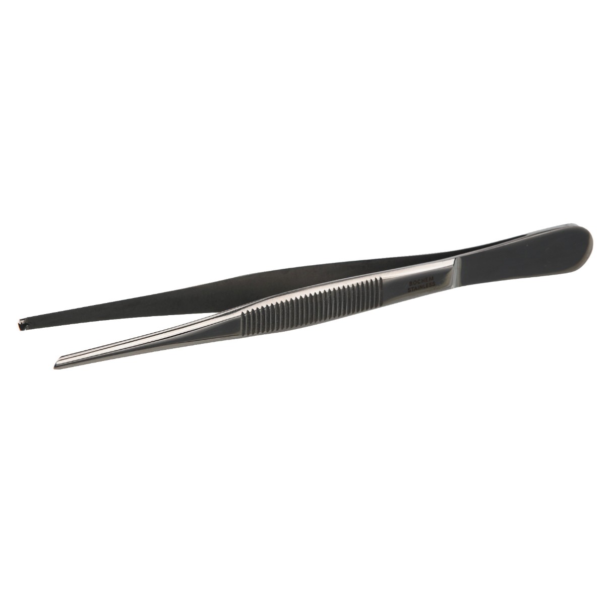 Лабораторный пинцет Bochem с зубцом изготовлен из магнитной хромированной стали марки AISI 430 с содержанием хрома 17%, что обеспечивает высокую прочность, коррозионную стойкость и долговечность.