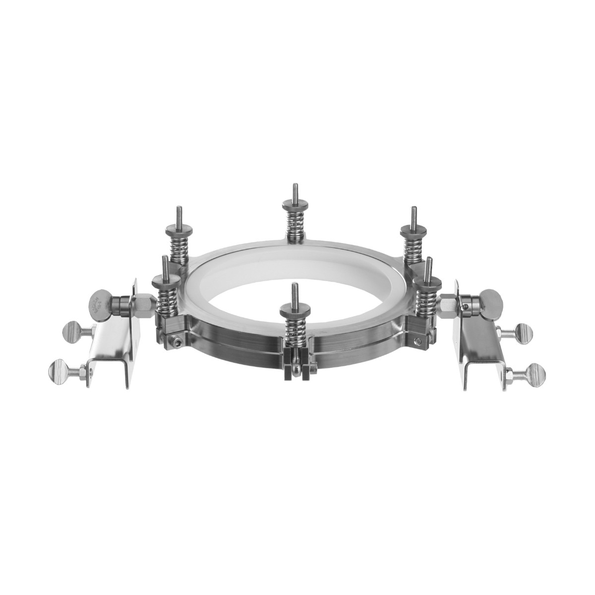 Вставки из ПТФЭ обеспечивают дополнительную герметизацию и устойчивость к химическим воздействиям, делая данную систему идеальным решением для химических, фармацевтических и исследовательских лабораторий, где требуются надежное крепление, простота обслуживания и безопасность работы с реакторами и другим технологическим оборудованием.