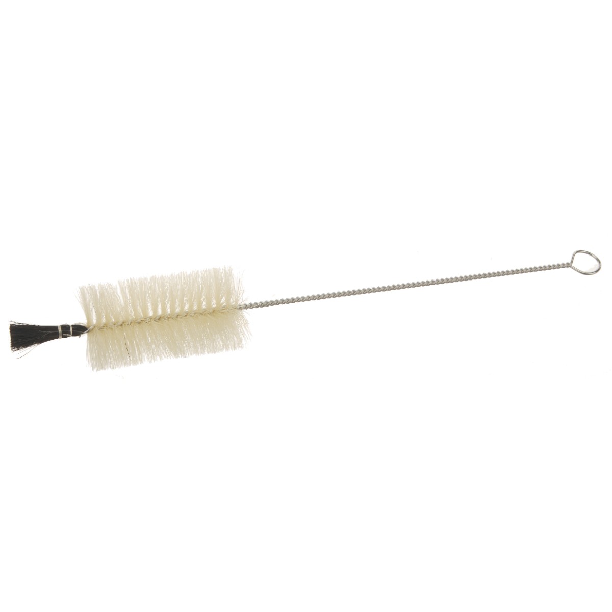 Щетка дополнена функциональной черной кисточкой на конце щетины, которая расширяет возможности инструмента. Эта деталь предназначена для точечного удаления загрязнений в узких местах, таких как горловины колб, труднодоступные зоны пробирок или резьбовые соединения.