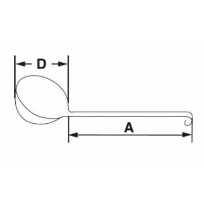 Прямая ручка длиной 350 мм обеспечивает комфортную работу с емкостями различной глубины, а крючок на конце позволяет фиксировать инструмент на краях сосудов или подвешивать для хранения. Ковш диаметром 160 мм и объемом 1 000 мл оптимизирован для точного дозирования. Полированная поверхность упрощает очистку и предотвращает адгезию материалов.